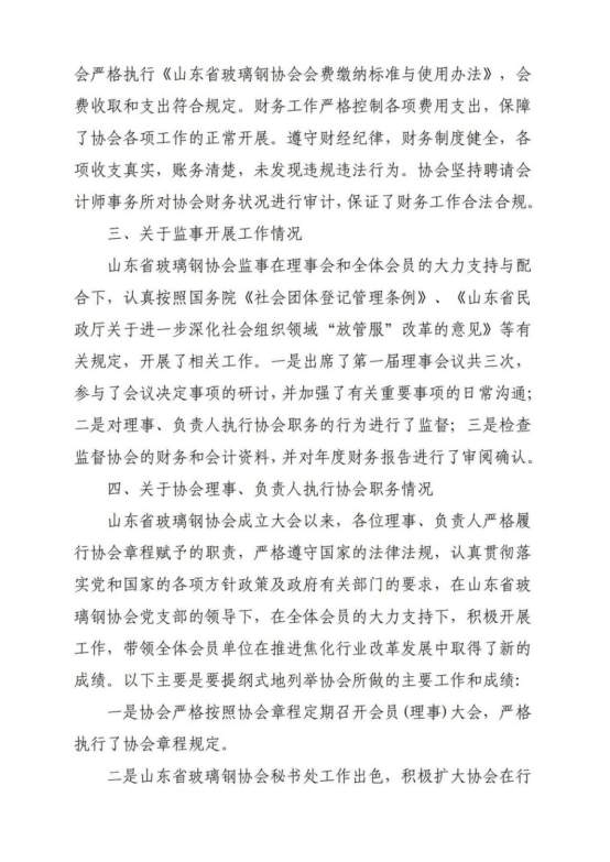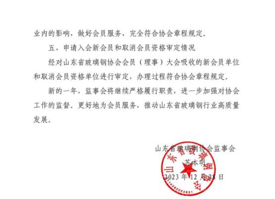 山东省玻璃钢协会2023年度监事工作报告